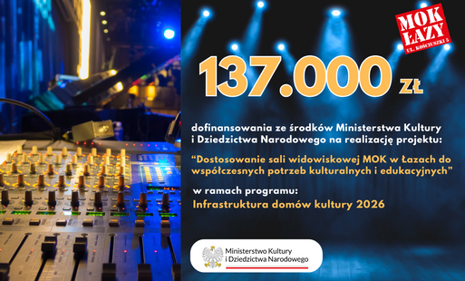 14 marca, godz. 11.00 MOK ŁAZY - przesłuchania dla uczniów szkół średnich oraz studentów do 26 roku życia zamieszkujących bądź uczących się na terenie gminy Łazy