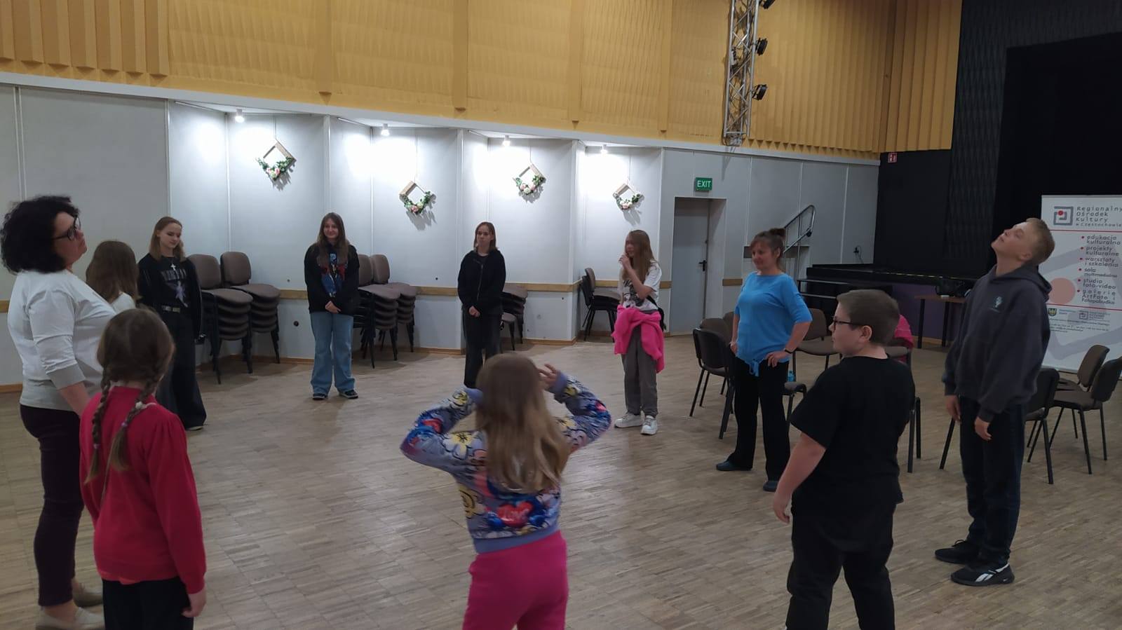 Zajęcia odbyły się w ramach programu MUKiS – Mobilny Uniwersytet Kultury i Sztuki. Było dużo ruchu, pracy z głosem , emocji i przede wszystkim – dobrej zabawy! Dziękujemy za inspirującą atmosferę i nowe teatralne doświadczenia! Gramy dalej!